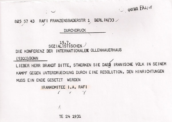 شش: تلگراف به ویلی برانت در مورد وضعیت حقوق بشر در ایران (1978)